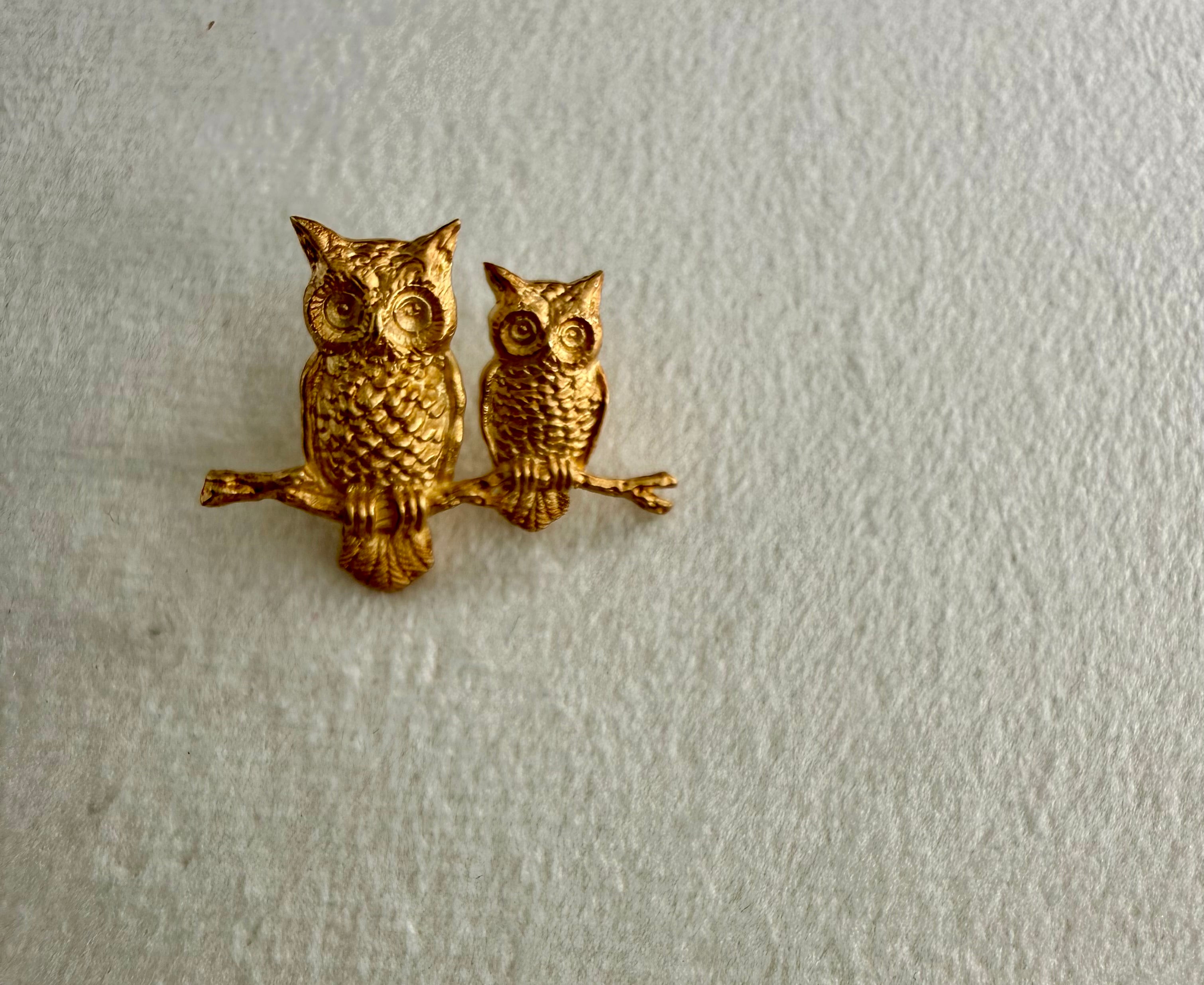 This is a double owl hat pin. The material is a soft gold as shown on our The Dolls hat.
