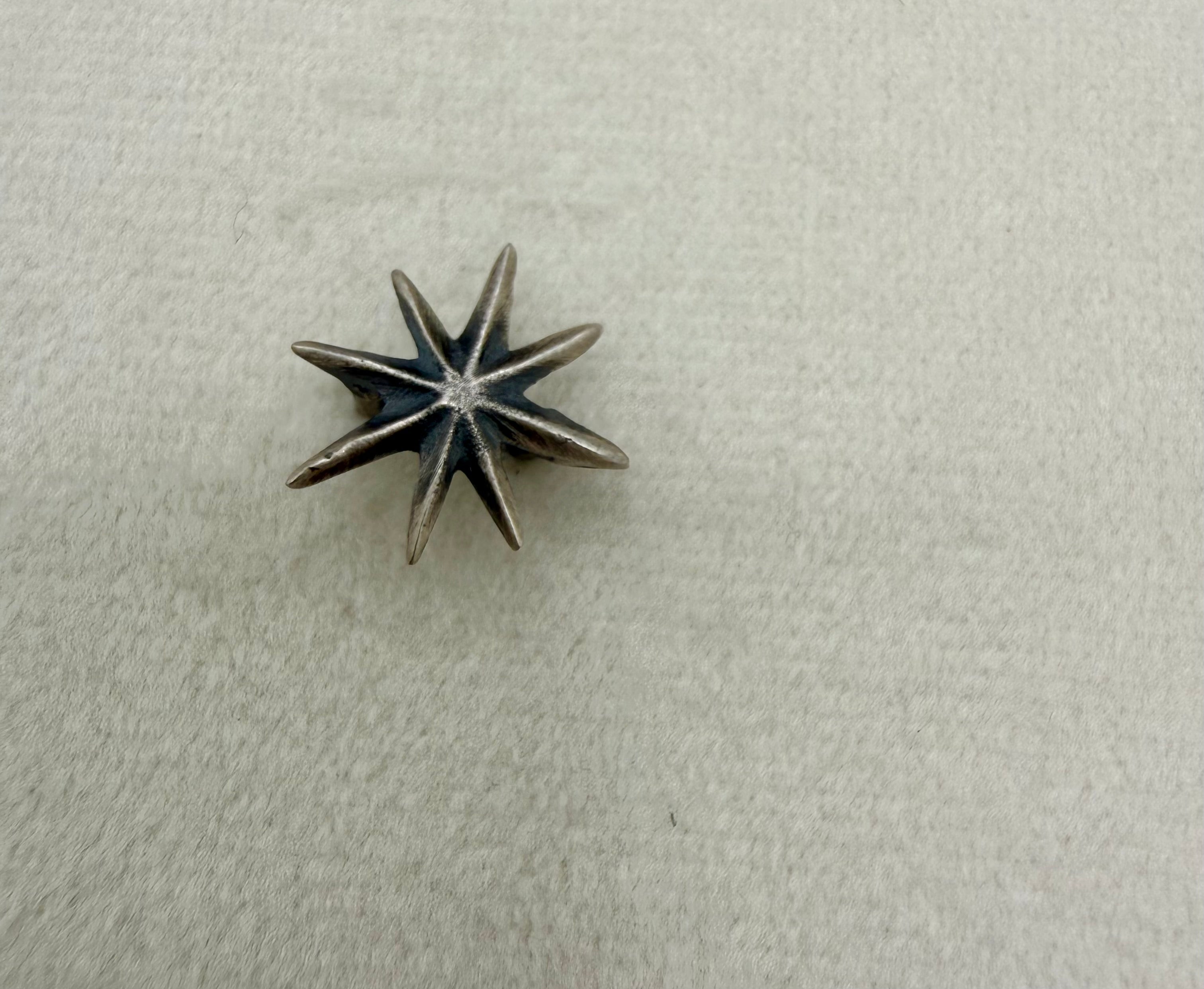 Starburst pin- not sold as a set. The material is a sterling silver. Also pictured on the Stars and Stripes hat.